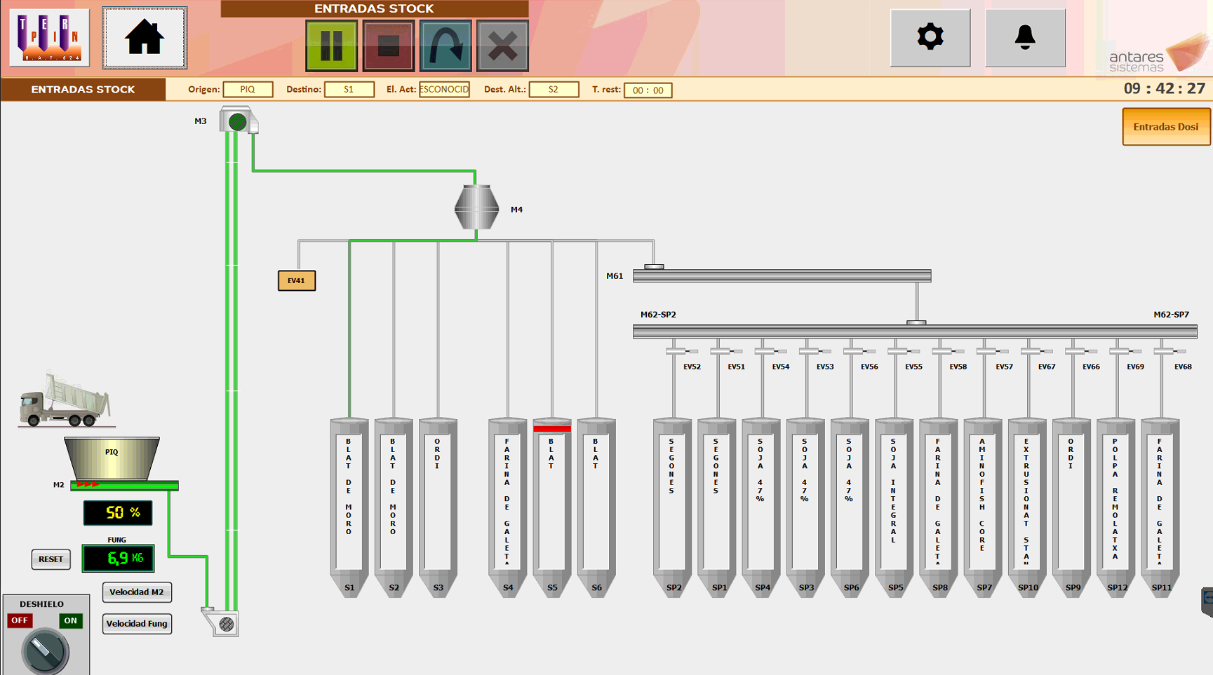 | Stock | Niveles de silos y materia prima |